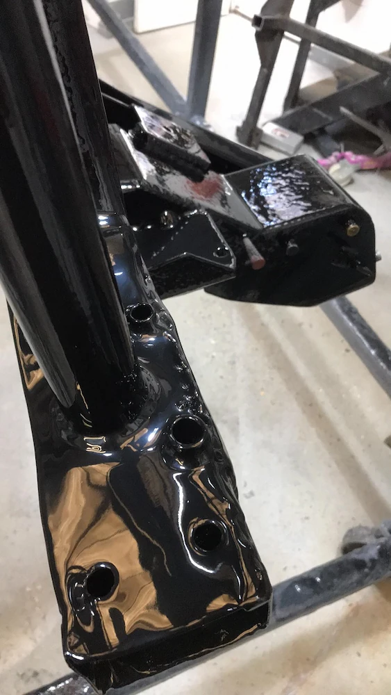 Here’s a Subframe and Anti Roll Bar, freshly powder coated in Plascoat gloss black…