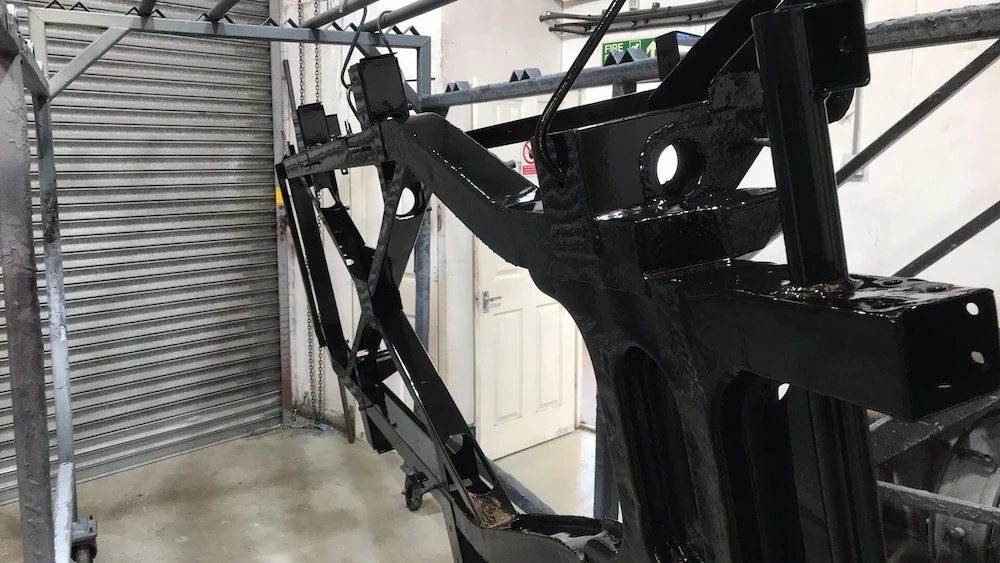 Chassis blast cleaned, with 2 coast Plascoat PPA571 applied, this product gives exceptional long lasting protection.