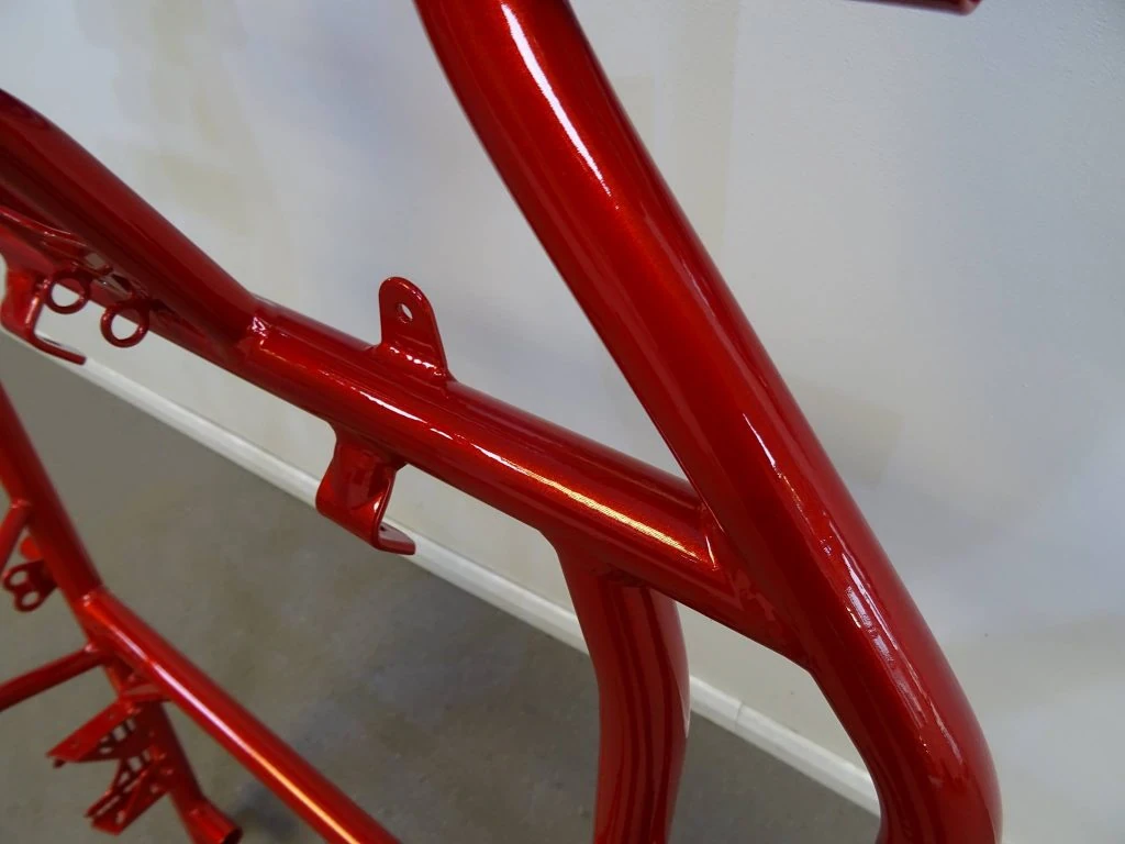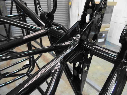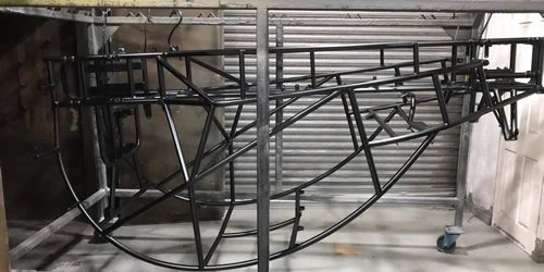 After careful preparation and paying attention to detail, powder coating can match most wet paints on items such as these car body chassis, with the added bonus of outlasting wet paint by years. Our products are impervious to oil grease, brake fluid, road salt, and most corrosive chemicals. Resistant to stone chipping and very flexible. Highly recommended for any under body work.