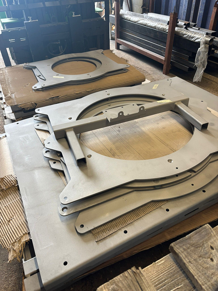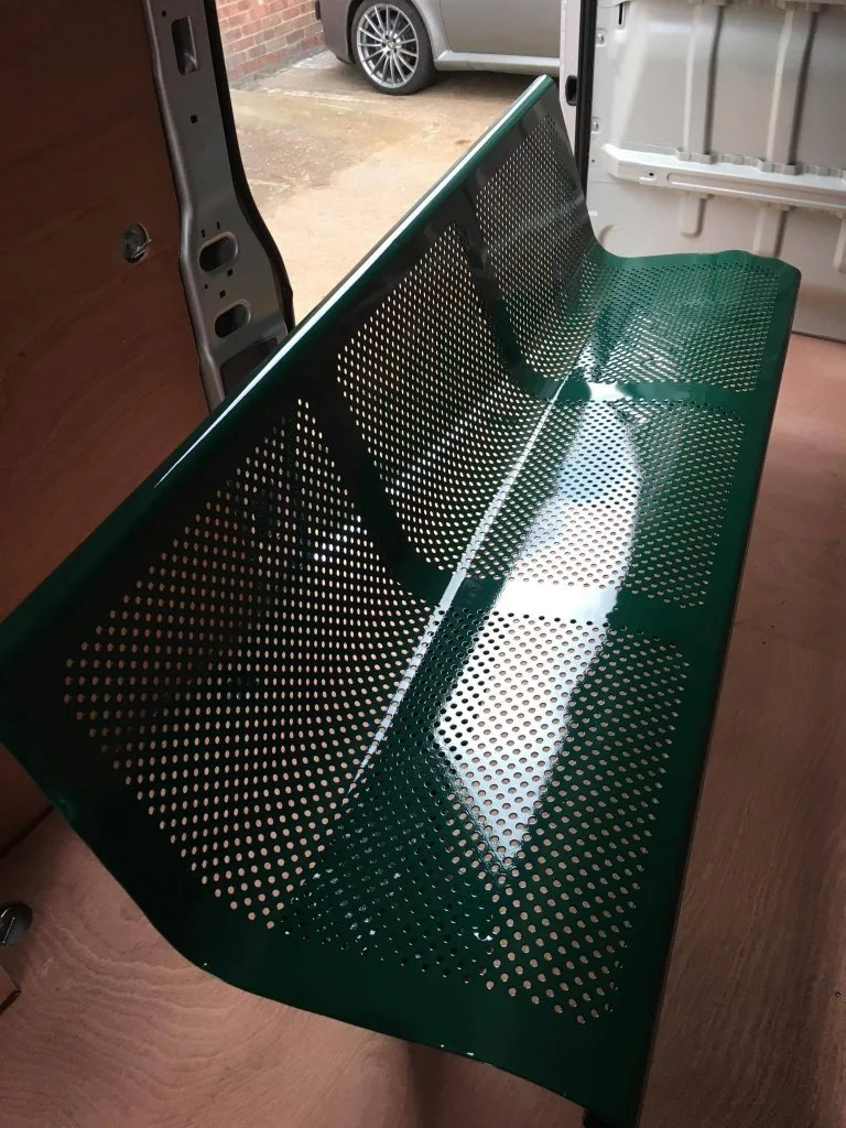 All parts may be blast cleaned or de-greased & phosphated as standard practice and can have a self-healing AKZO NOBLE (PZ770) primer applied as an optional extra and semi cured a polyester coat then applied to the primer, this is normally done whilst the work is still hot from the fist stage, this allows better adhesion and promotes further coverage in the hard to reach places as joints and corners.