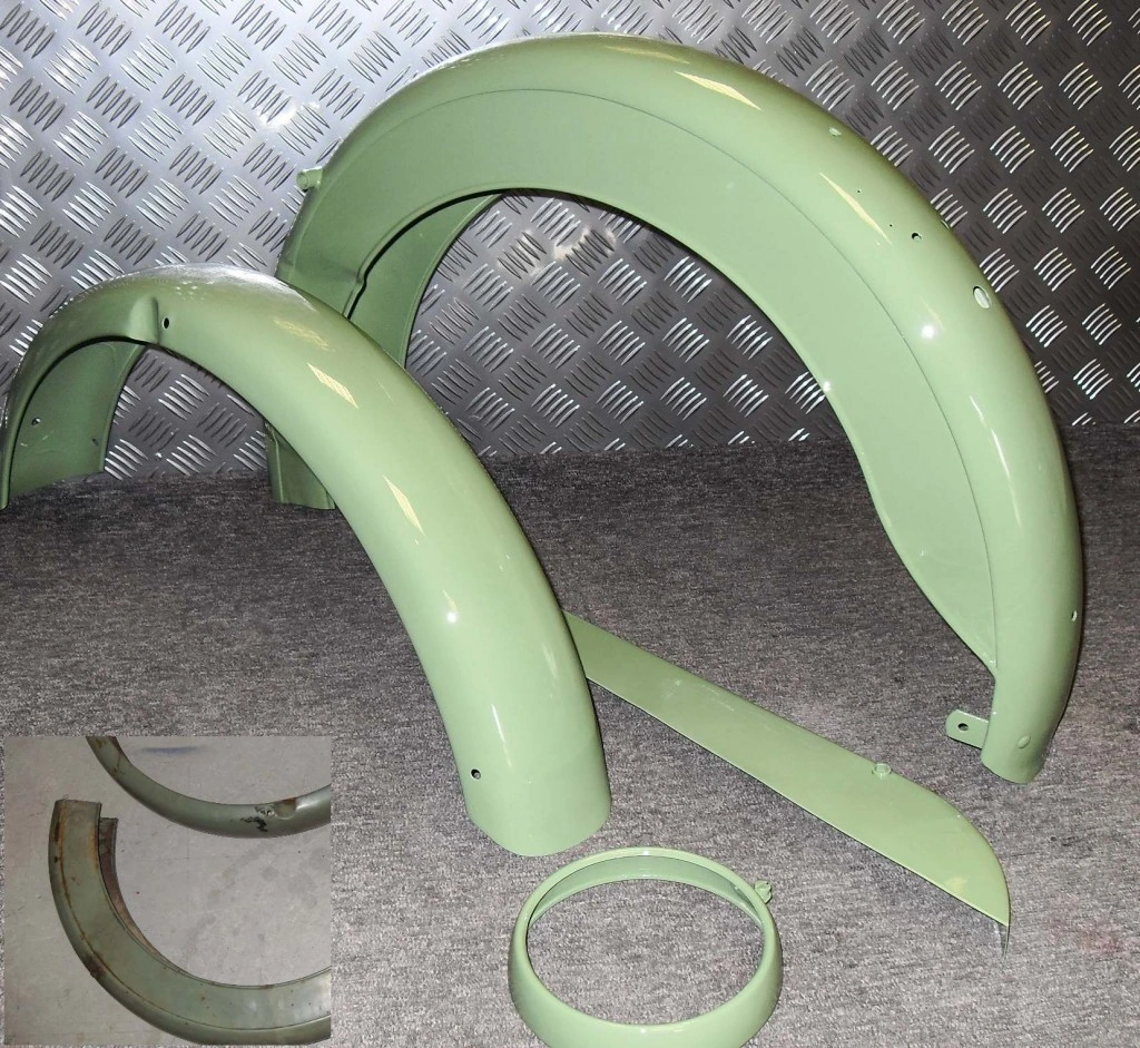 Motorcycle PanelsBSA refurbished motorcycle panels, powder coated Majestic over black base. No end to our powder coating magic. Motorcycle Panel Projects Motorcycle Casing Covers Powder Coated Motorcycle Panels Repaired Mudguard